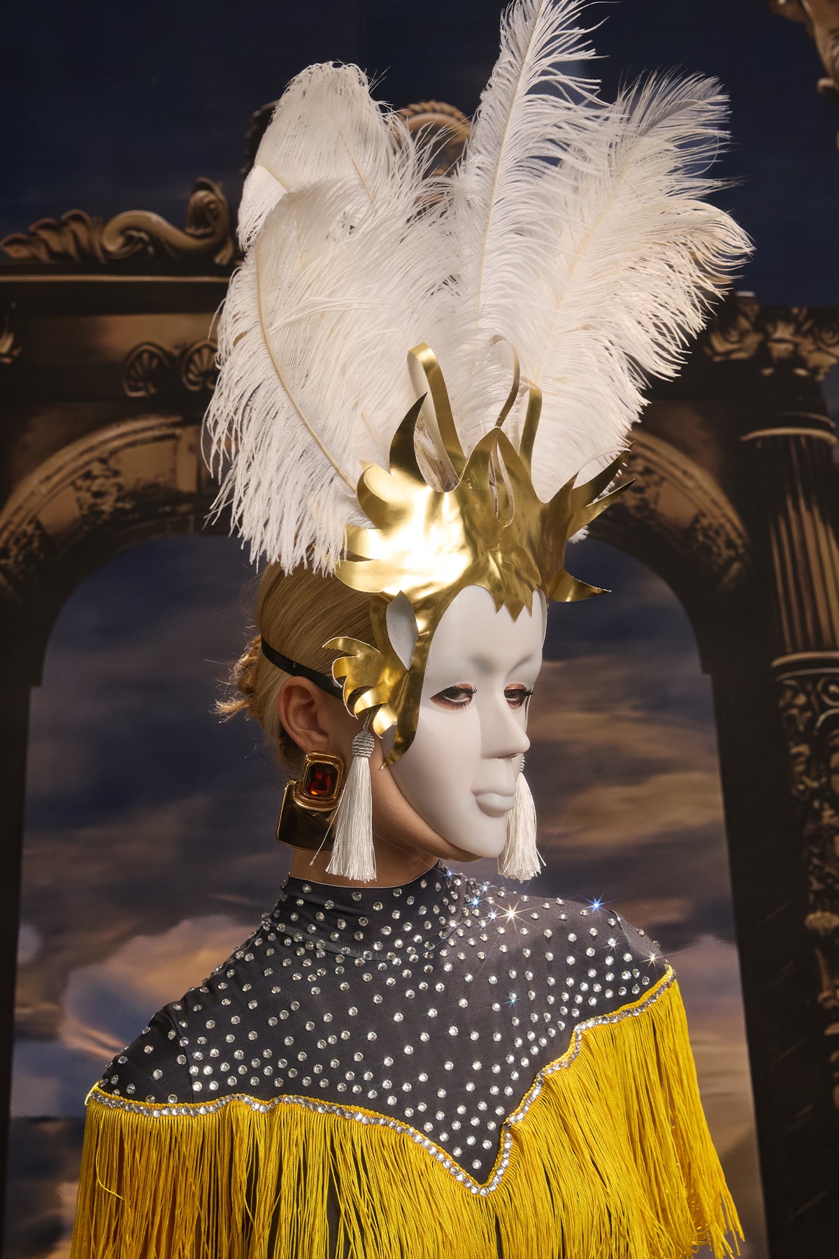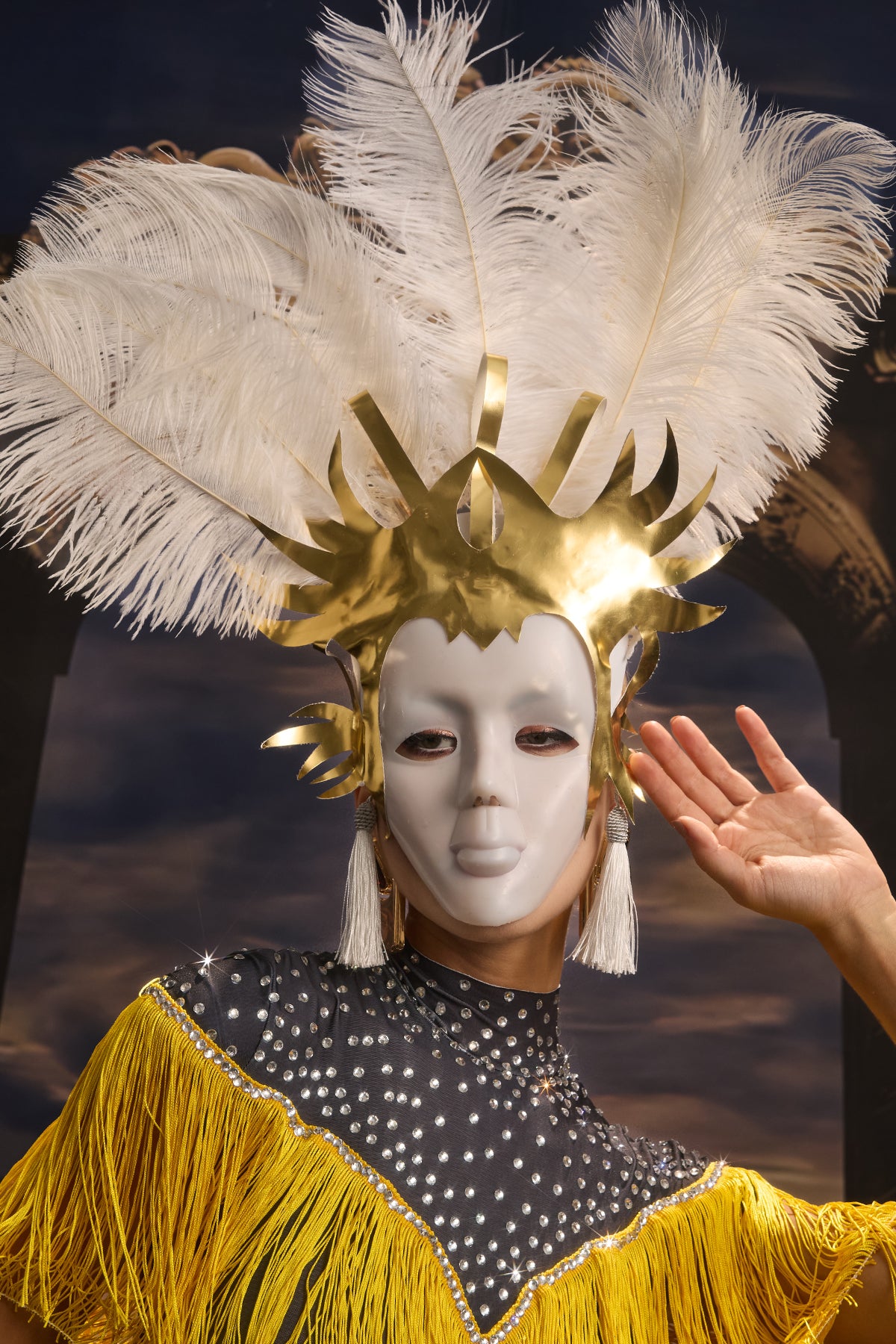 Mysterious and majestic, the Maelynn Feather Mask is a dramatic creation for performers, divas and fantasy lovers. With a sculpted face, delicate filigree patterns and soft, fluffy white feathers atop its head, the mask exudes elegance and is the perfect finishing touch on stage. Whether you're attending a masquerade, starring in a cabaret, or elevating a drag or festival look, this mask will inject royalty and drama into every scene. It's more than a mask, it's a transformation.