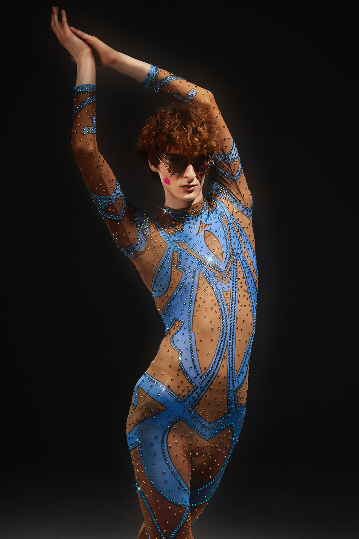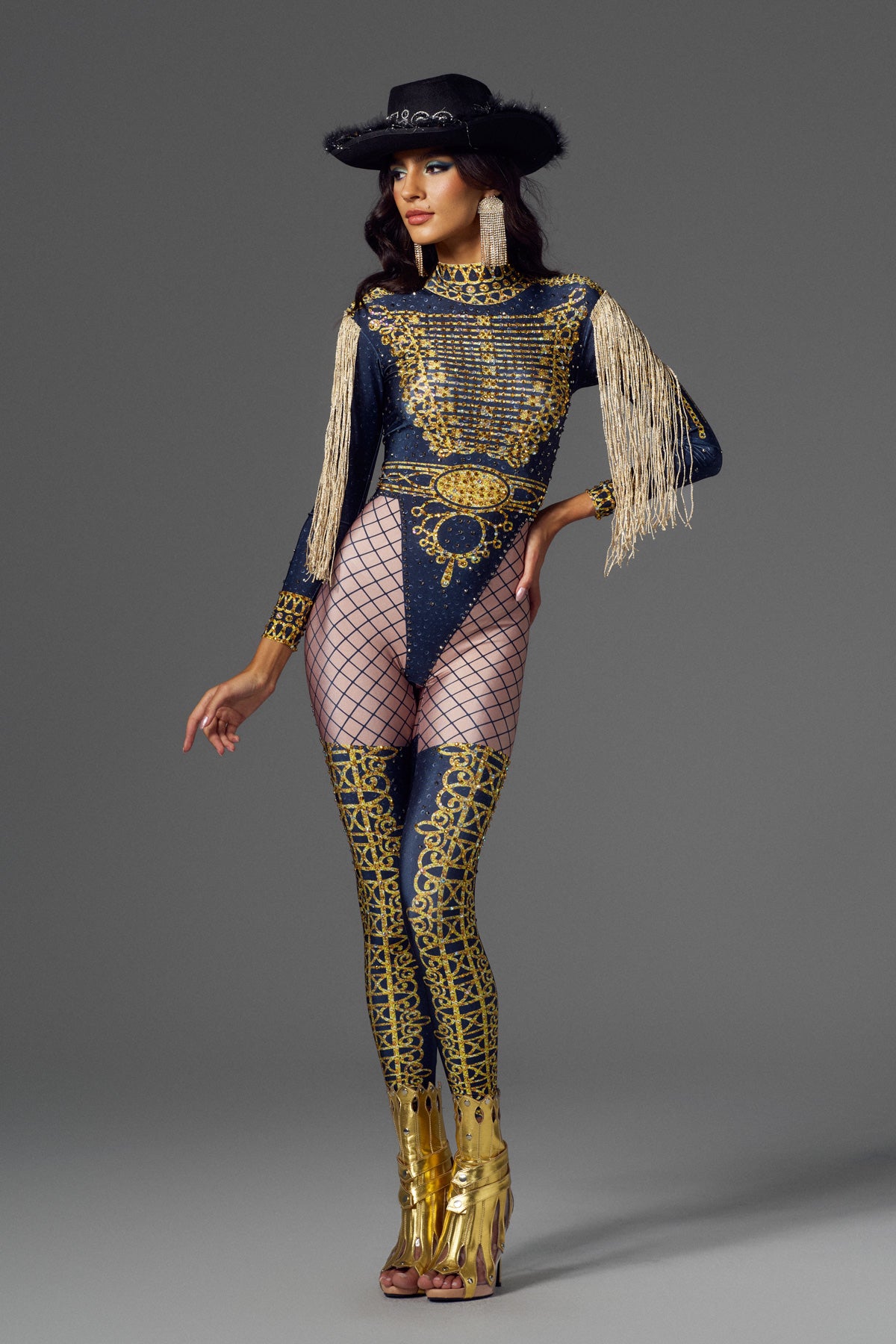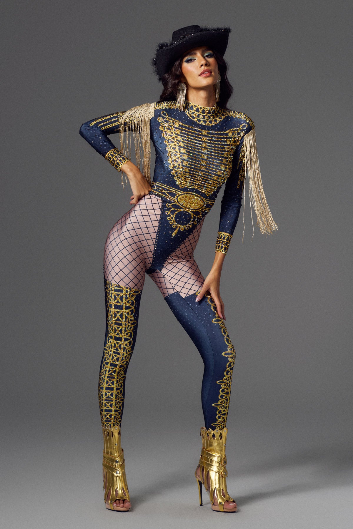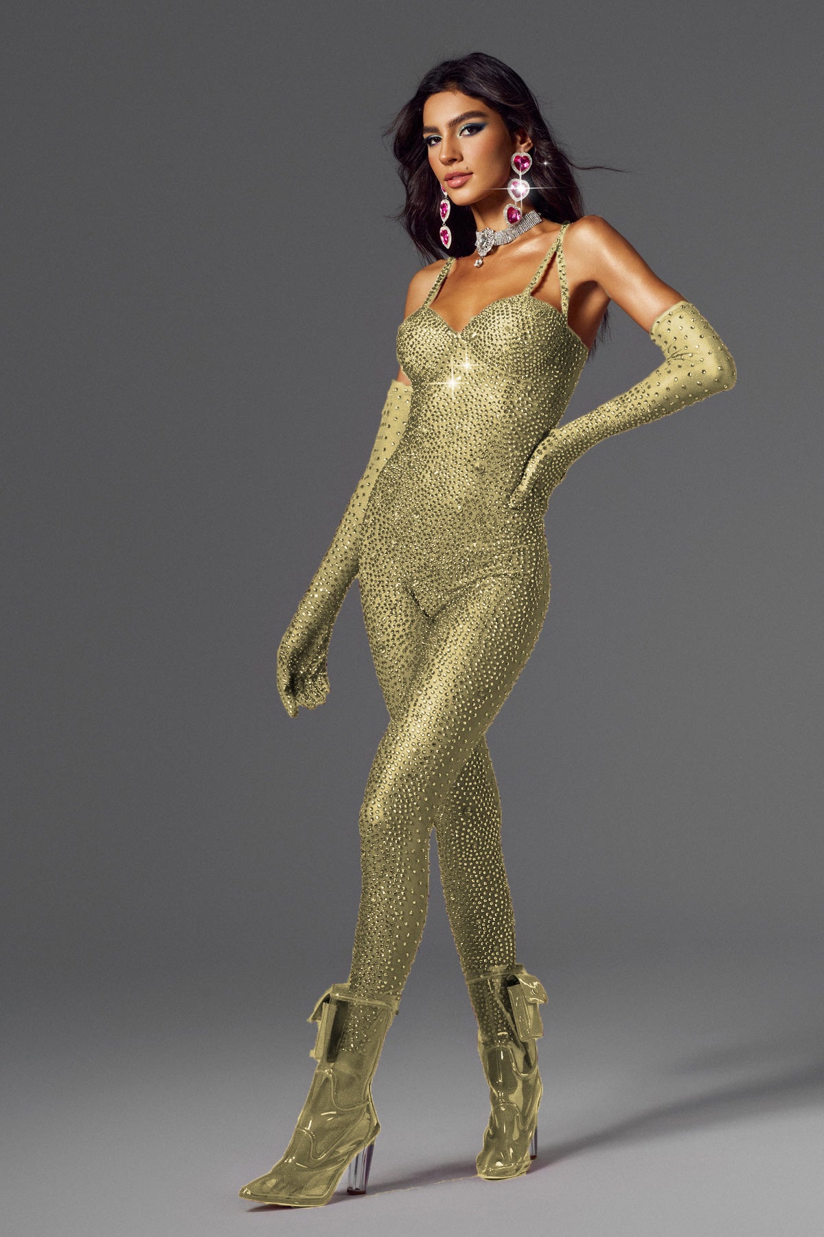 Abetzi Printed Rhinestone Gloves Jumpsuit