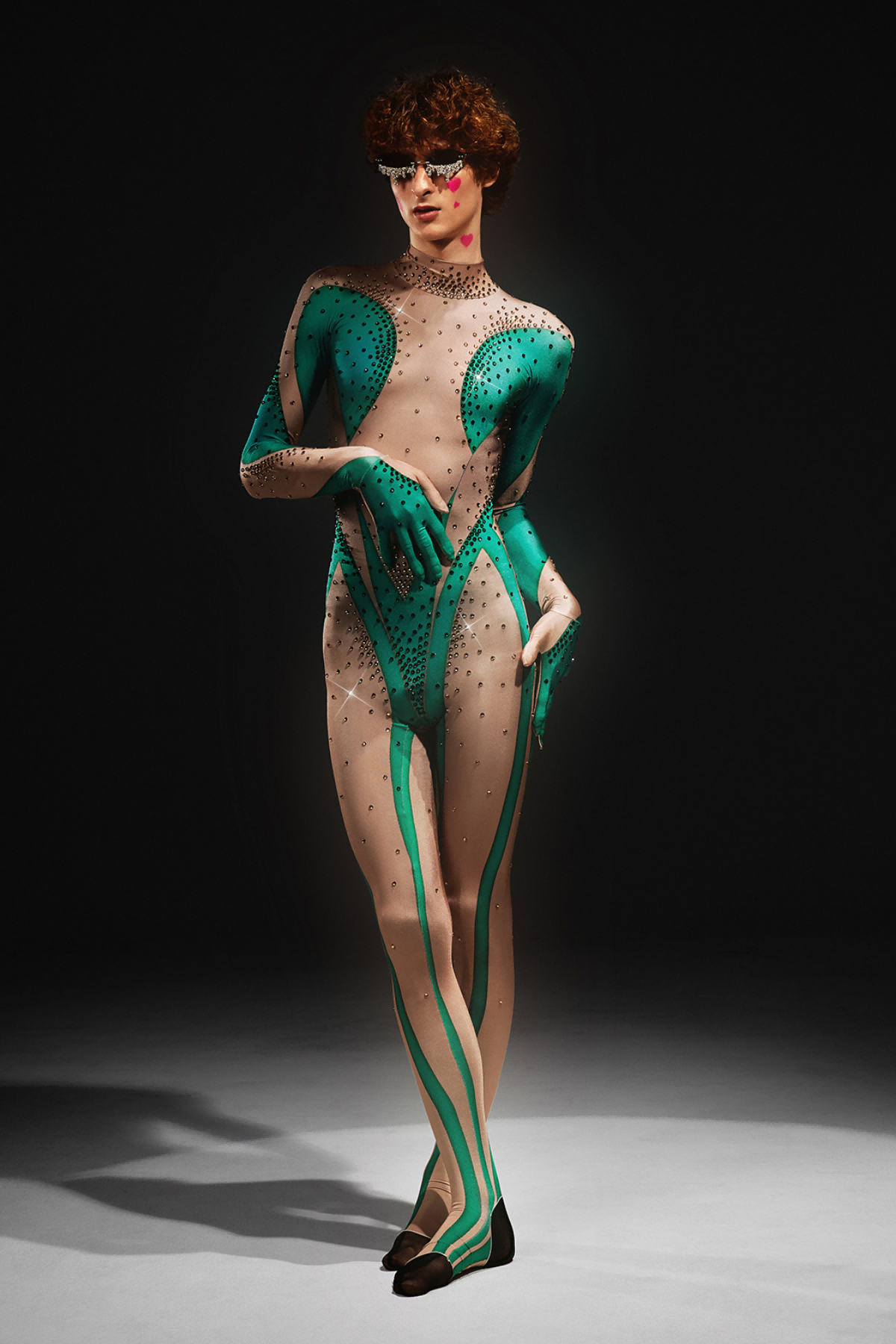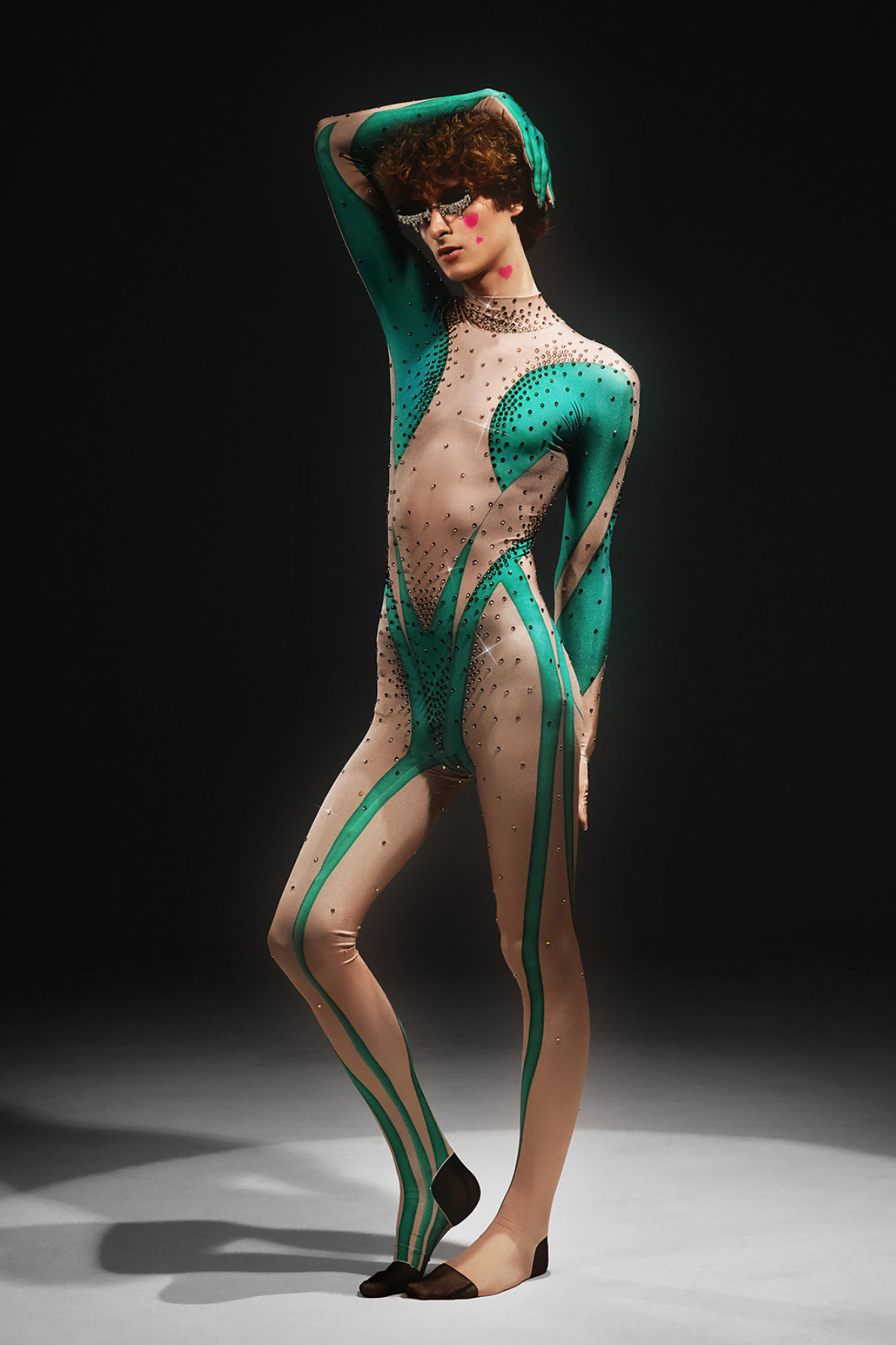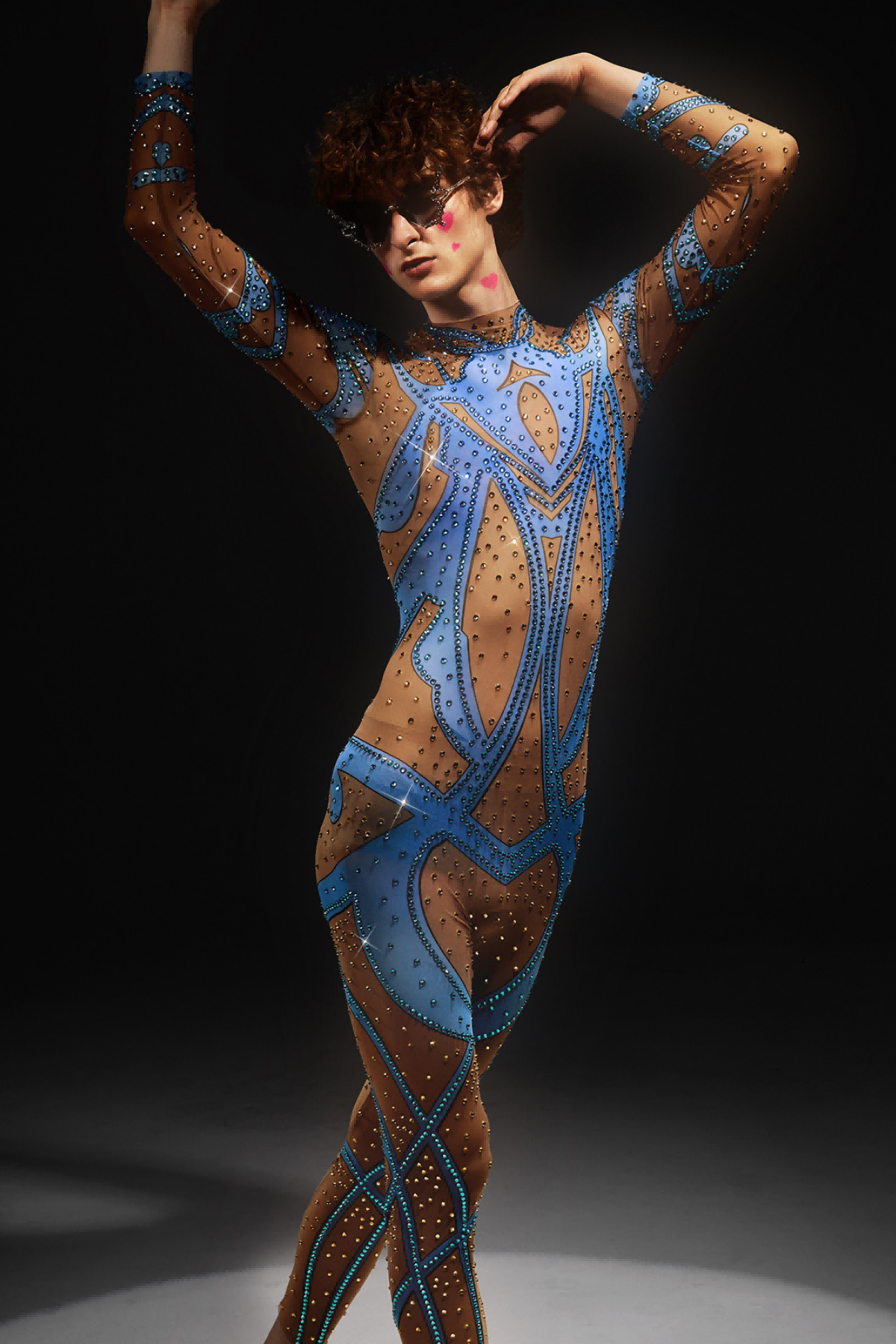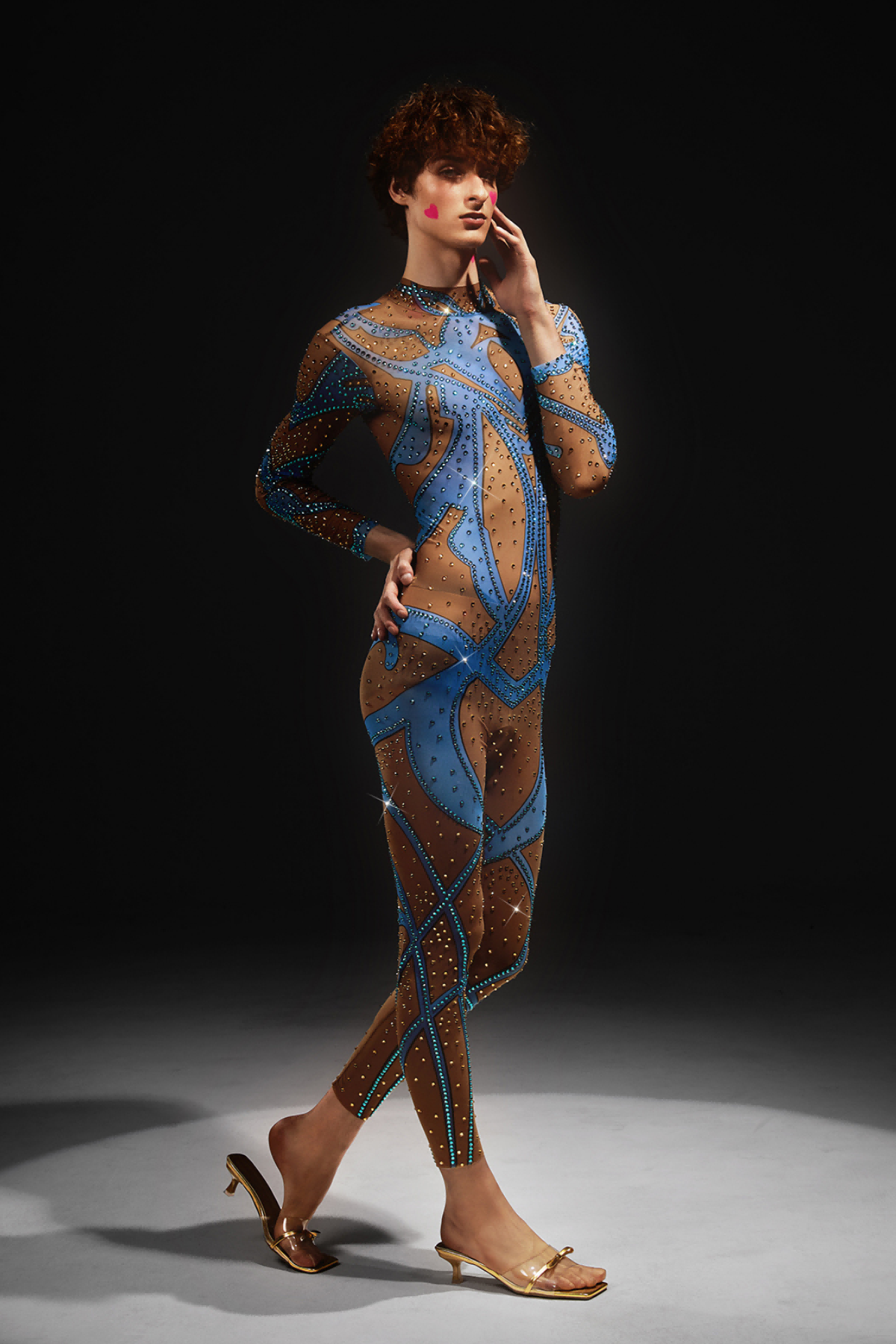 Abetzi Printed Rhinestone Gloves Jumpsuit