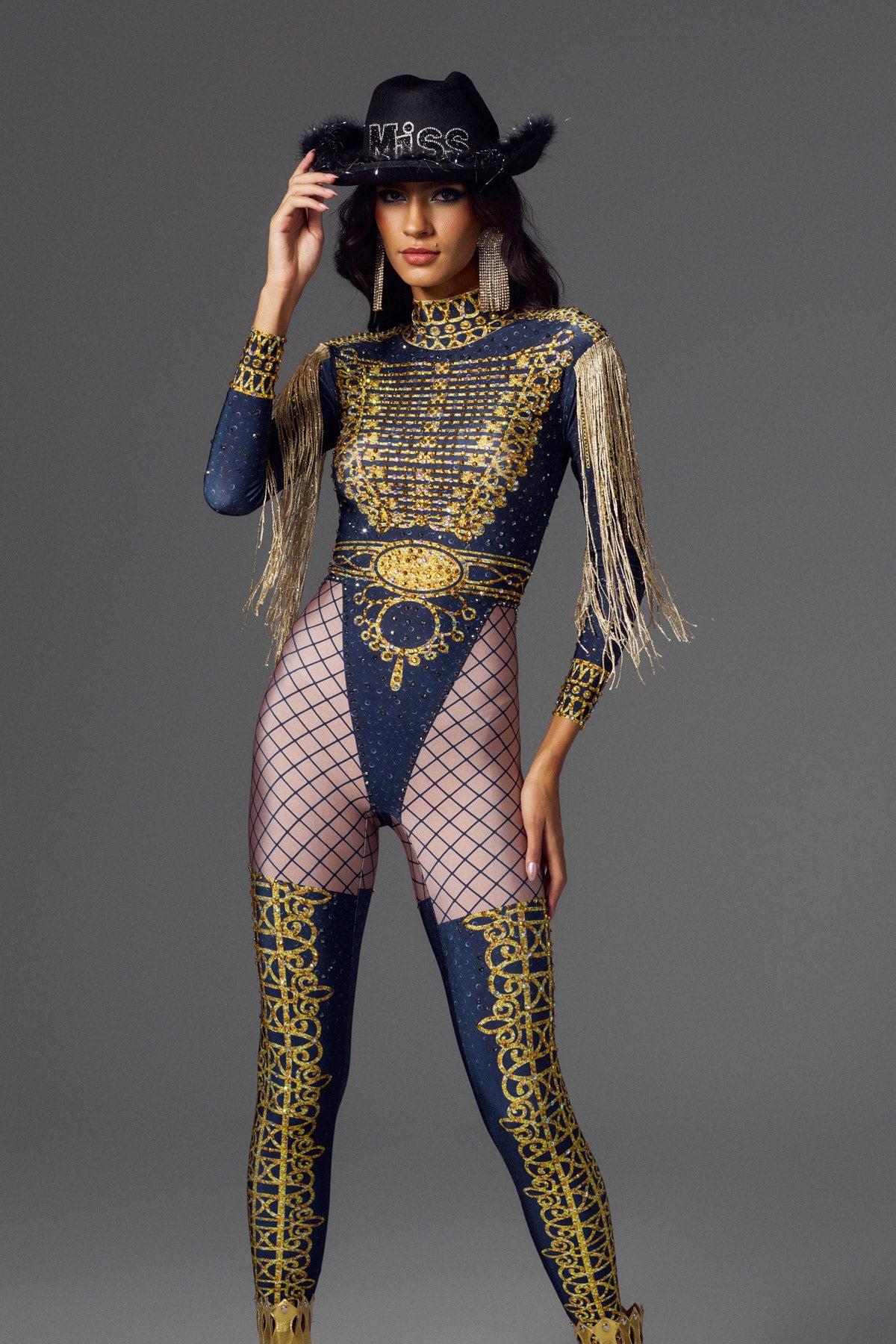Abby Halter Neck Fringe Rhinestone Bodysuit