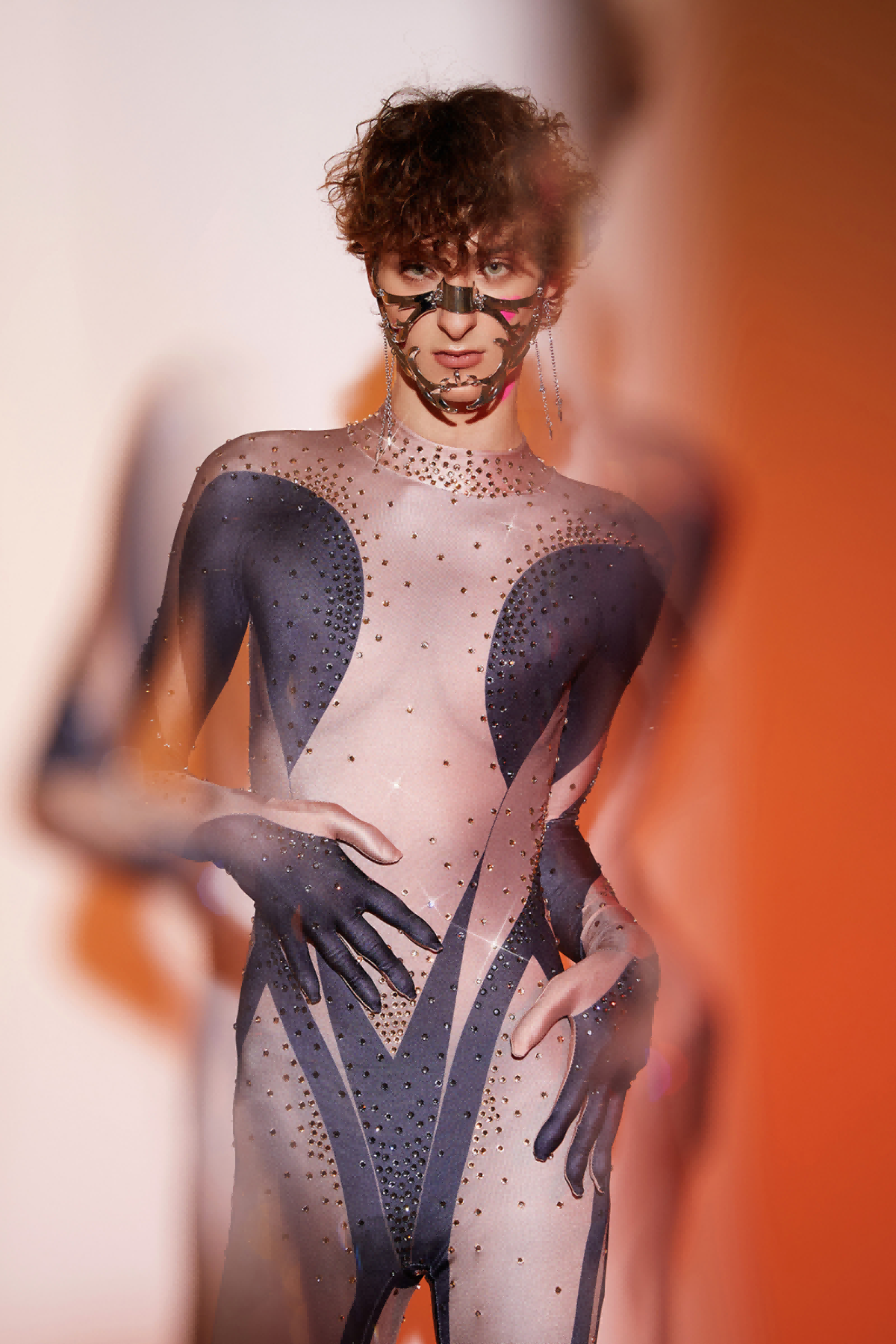 Aceso Spaghetti Rhinestone Mesh Bodysuit