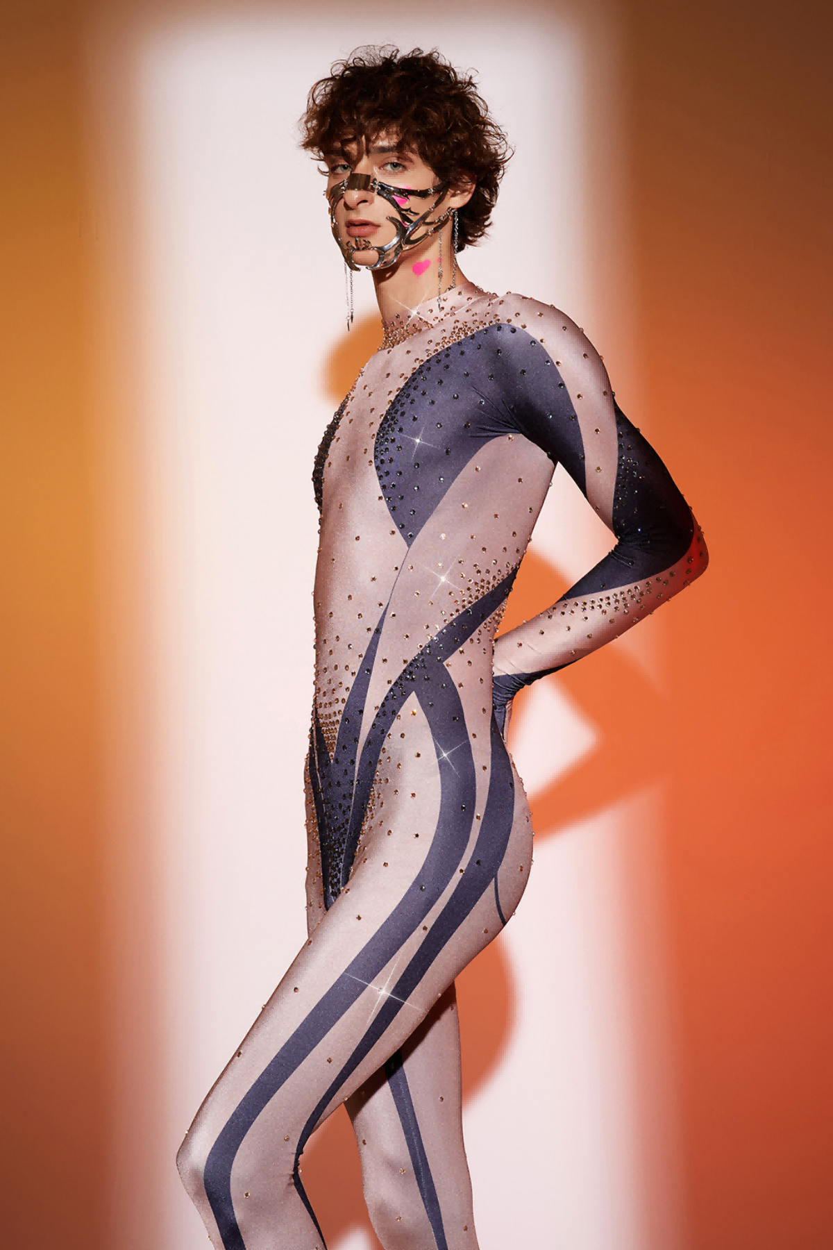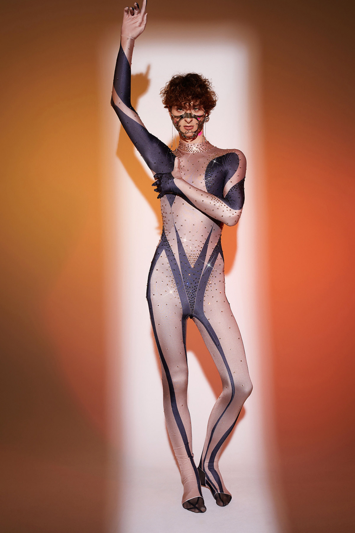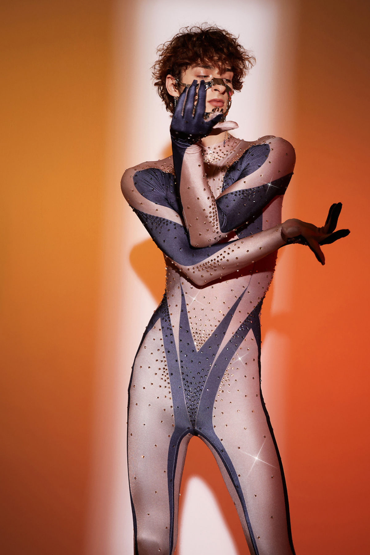 Abhay Printed Rhinestone Gloves Jumpsuit