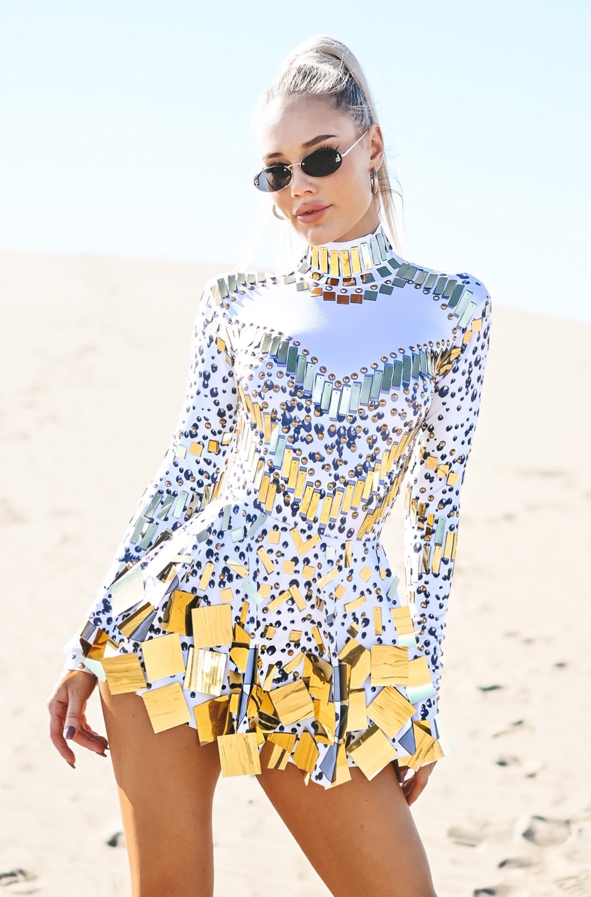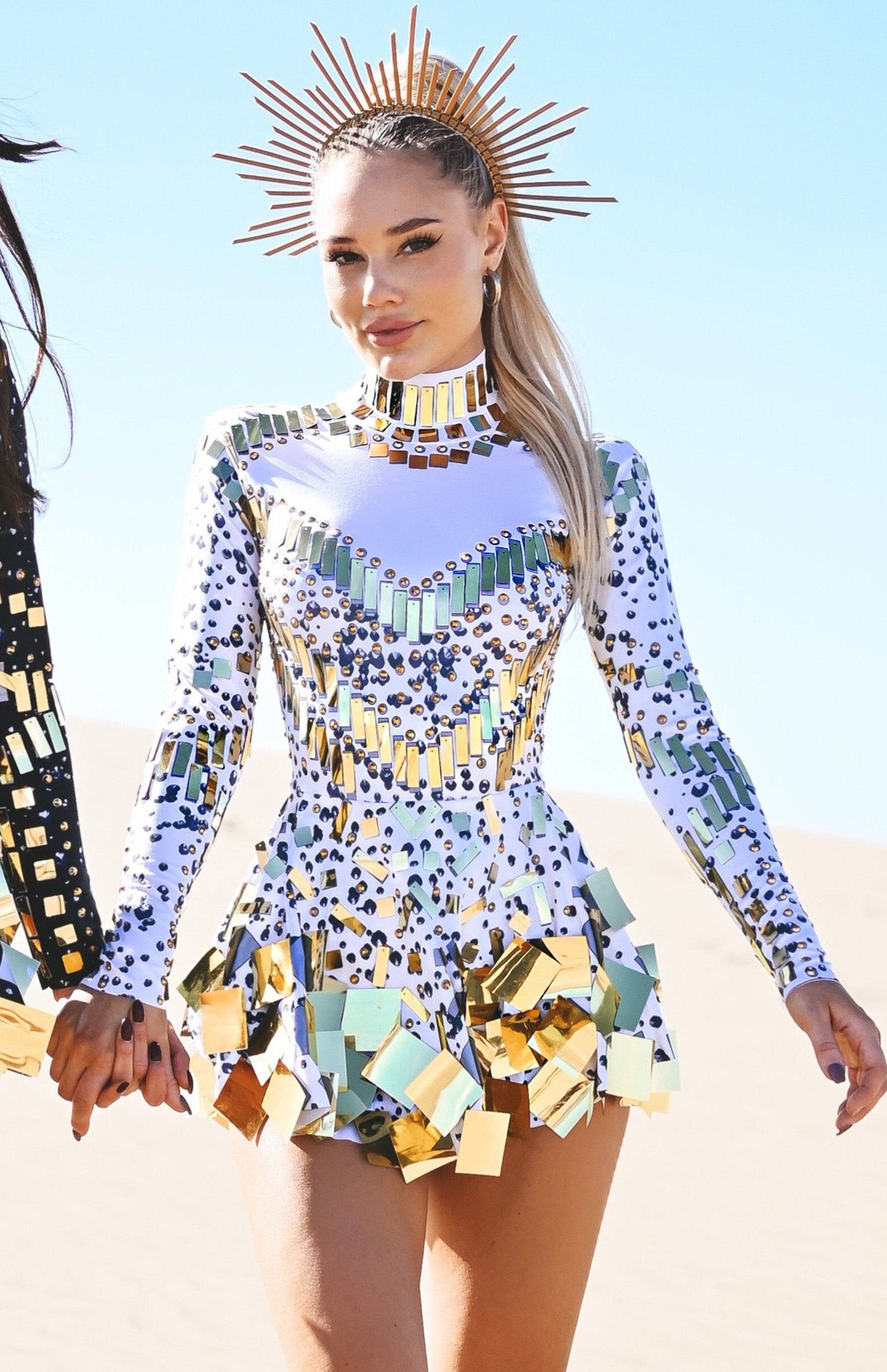 Zuri Sequin Long Sleeve Dress Gold