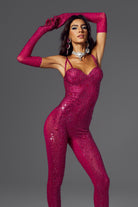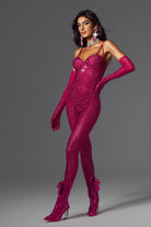 Abigail Spaghetti Rhinestone Jumpsuit-Sparkling Jumpsuit for Stage & Festival