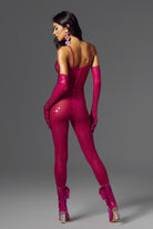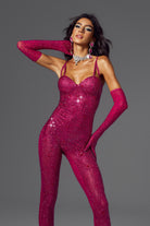 This Abigail Spaghetti Rhinestone Jumpsuit is inspired by Dua Lipa and is tailor-made for you who want to dominate the stage and shine! The tight version outlines the ultimate curves, and the long rhinestone gloves of the same color make the visual impact reach the peak. Whether it is a festival performance, a nightclub dance floor, or a MV shooting, this jumpsuit can become your secret weapon to become the focus.