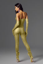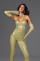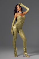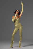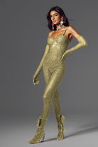 Abigail Spaghetti Rhinestone Jumpsuit Gold-Sparkling Jumpsuit for Stage & Festival