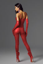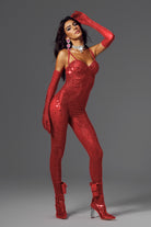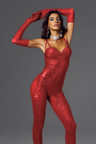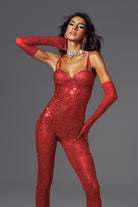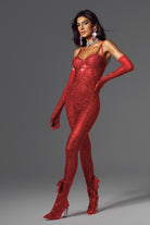 Abigail Spaghetti Rhinestone Jumpsuit Red-Sparkling Jumpsuit for Stage & Festival