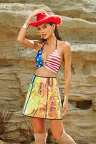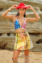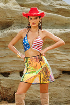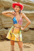 Be the center of attention with the Adriel Halter Neck Sequin Top. This shimmering piece is all over sequins and features a halterneck neckline for a flattering look from every angle. The open back lends a sexy, confident vibe, while the cropped cut pairs perfectly with high-waisted bottoms, leather pants or a stage skirt. Whether you're performing, partying or posing at a festival, this top will make you shine with every move.