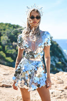 Make a dazzling statement at your next event with our Alexandra Sequin Dress In Silver. Designed with all-over sequin detailing and a sheer mesh panel, this dress offers a chic, futuristic look that shimmers with every movement.Fitted silhouette highlight your figure, while the playful flared skirt adds a touch of fun. Pair it with bold accessories and you're ready to shine at any party, festival, or night out.