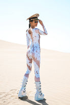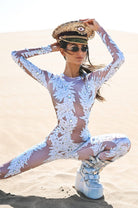 Allie Long Sleeve Print Rhinestone Jumpsuit -Ethereal Stagewear & Garden Party Elegance