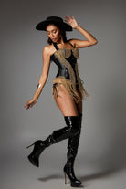 Amani Halter Neck Chain Bodysuit-The chain tassel decoration is dynamic