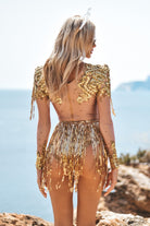 Angel Sequin Fringe Bodysuit In Gold