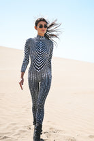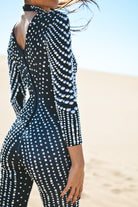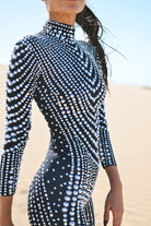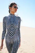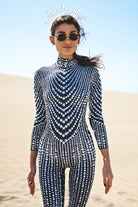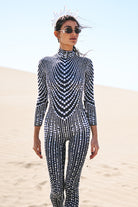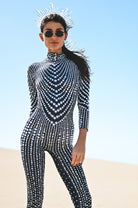 Become the focus of the audience and perform the ultimate luxury! Ariah Rhinestone Pearl Jumpsuit Black uses the ultimate craftsmanship to create a dazzling visual effect, just like a goddess battle suit with flowing light. It is suitable for music festivals, stage performances, parties, photo shoots, nightclub styling and other highlights.