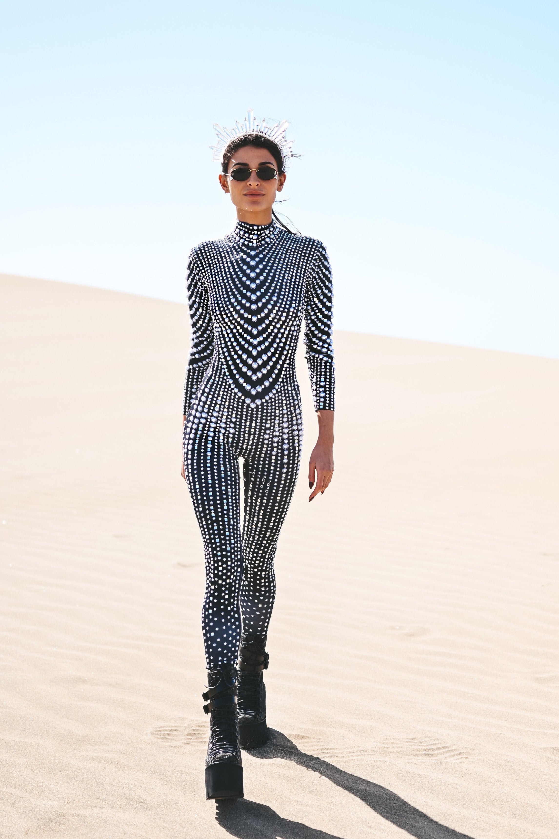 - High collar and long sleeves design: both elegant and futuristic, bringing a mysterious and fashionable look