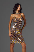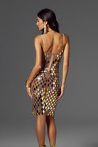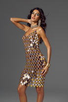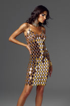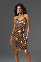 Inspired by Blake Lively's classic fashion style, this Athena Spaghetti Acrylic Embellished Mini Dress perfectly blends modernity and luxury. The dress is decorated with unique geometric acrylic patterns, and each shiny reflective decorative piece presents a unique color change, ensuring that you can exude charming brilliance in any occasion. The slim design of the dress outlines the perfect body curve, while the unique material and eye-catching design details give the dress an unparalleled visual effect. Whether it is a stage performance, a red carpet event, or a fashion party, this dress can make you the focus of everyone's attention and show extraordinary confidence and style.