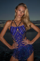 Averie Rhinestone Fringe Bodysuit Blue-Dazzle in Every Move
