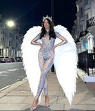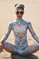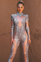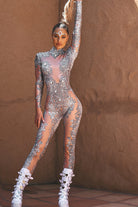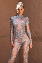 Bonnie Long Sleeve Rhinestone Jumpsuit Silver