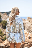 Set with a jacket and a skirt in beautiful silver sequins. The perfect set to wear at festivals, rave's and themed birthday parties. The jacket closes with a zipper at the front. The skirt has an elastic band at the waist for a perfect fit.