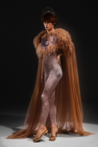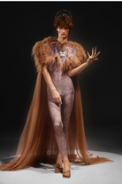 This Brooklyn Cape Printed Jumpsuit, inspired by Beyoncé's fearless aura, perfectly blends power and elegance. The lion print on the front of the cape symbolizes the spirit of the king, while the fitted design of the jumpsuit shows the beauty of the female curves. The cape is light and elegant, adding a sense of mystery and romance, becoming the visual focus of the whole piece. Whether it is a stage performance, a party or a special occasion, this jumpsuit will make you the focus of the crowd and exude unique charm.