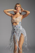 Make yourself the center of attention in the Bryony Cutout Sequin Fringe Mini Dress - a bold, shapely dress made for the stage and the spotlight. This mini dress features a bold front cutout, embellished with luxurious sequins and finished with eye-catching fringe details for a dynamic look. The sparkling sequins dazzle, while the cutouts add a sense of confidence and energy. Whether you're performing, hosting or dancing the night away, this dress will make you shine.