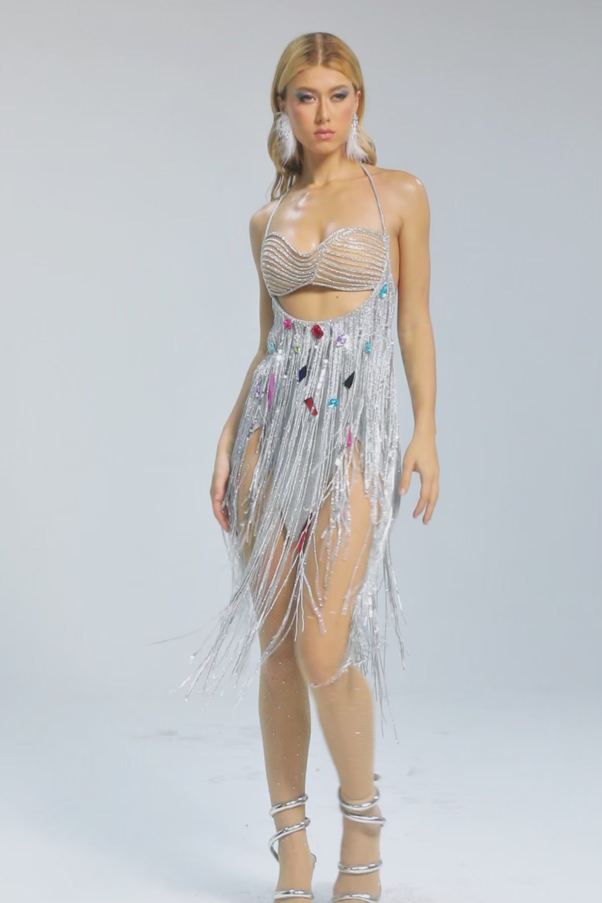 Bryony Cutout Sequin Fringe Mini Dress
