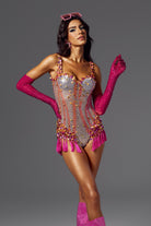 Take your magic to the stage in this stunning Camila Backless Rhinestone Bodysuit In Pink. Inspired by Taylor Swift's iconic concert looks, this bodysuit outfit features sparkling sequins, rhinestones and dynamic tassels that flow with your every move.