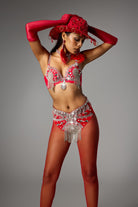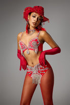 Catalina Rhinestone Bikini Three Piece Set In Red-Stage performance/carnival/party costumes