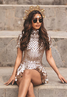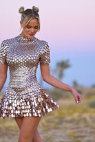 Charlotte Sequin High Neck Dress Metallic-Dazzling battle robe for music festivals & parties