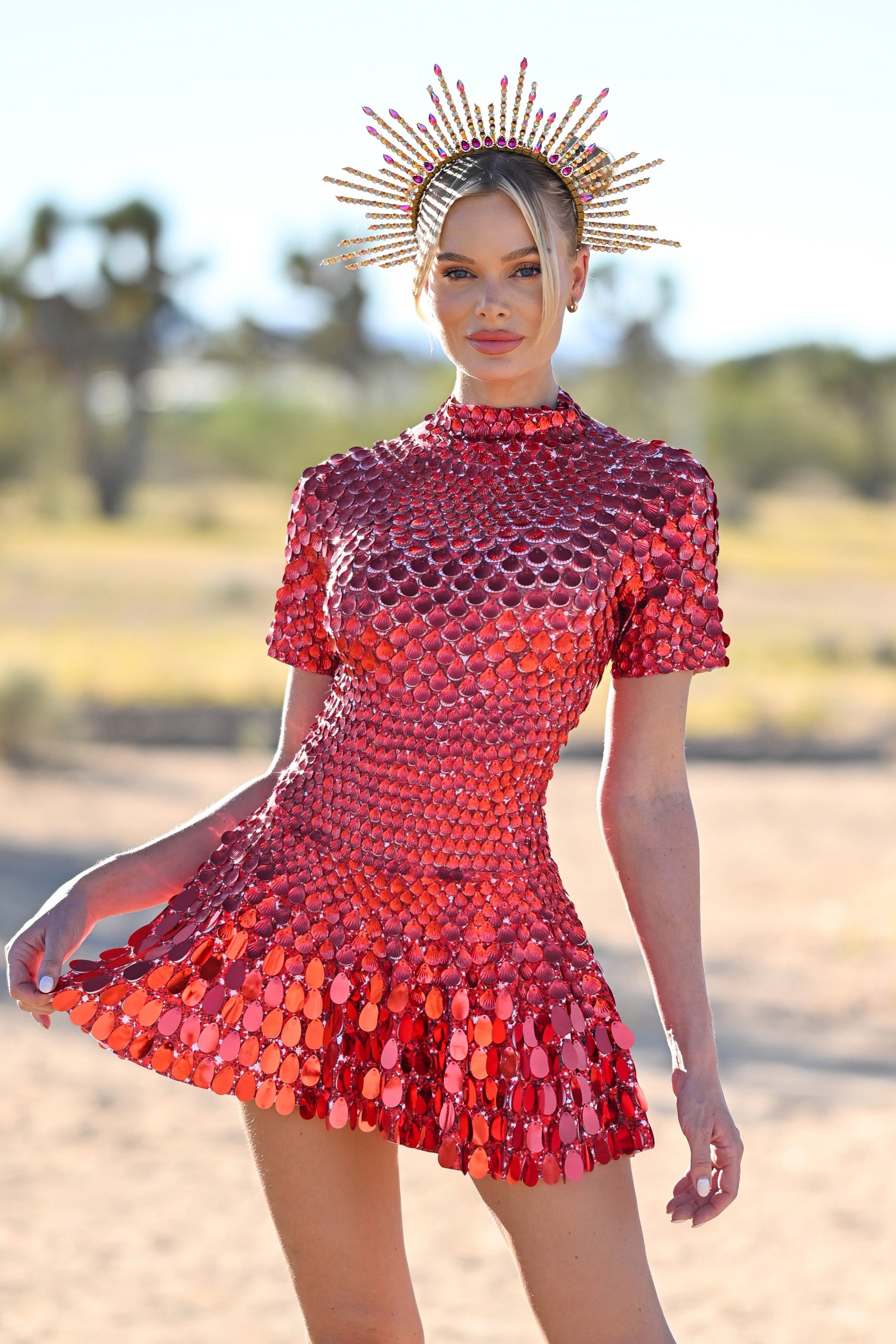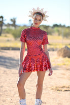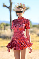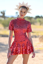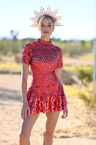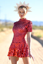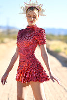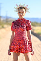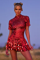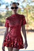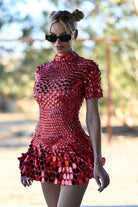 This Charlotte Sequin High Neck Dress Red, made of scale-like sequins, shines brightly in the light, showing a bold and sexy party style. The slim cut fits the body perfectly, the short-sleeved high-neck design adds elegance, and the smart skirt design makes it more energetic and playful. Whether it is a night party, a festival celebration or a dance, this dress can make you the focus of the audience.