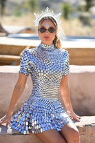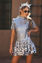 Charlotte Sequin High Neck Dress Silver-Music Festival&Party Goddess Robe