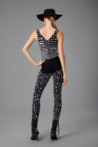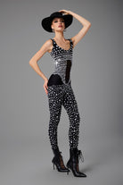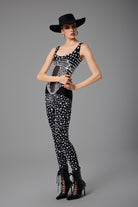 The Christian Mesh Crystal Embellished Jumpsuit radiates sophistication through structure and shimmer. Crafted from sheer black mesh and adorned with precision-set crystals, it sculpts the body with fluid brilliance. The fitted silhouette enhances natural curves while maintaining a sleek, performance-ready edge. Designed for stage, show, or statement styling, this jumpsuit captures the perfect balance of glamour and strength.