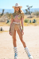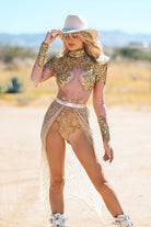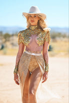 Shine on stage, at a photoshoot or at a glam event with the Clementine Long Sleeve Sequin Bodysuit Gold a masterpiece of all-over glitter and sophisticated glamour. Featuring an elastic waistband and extra-long glitter skirt, this gold sequin bodysuit is made from sheer fabric and generously sprinkled with glitter for an added touch of glamour. Designed for performers and fashion dreamers who crave head-to-toe glamour, it combines dazzling visuals with all-night comfort, making it your go-to outfit for cold-weather performances or chic indoor shows.