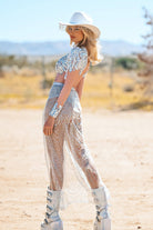 Shine on stage, at a photoshoot or at a glam event with the Clementine Long Sleeve Sequin Bodysuit Silver, a masterpiece of all-over glitter and sophisticated glamour. Featuring an elastic waistband and extra-long glitter skirt, this silver sequin bodysuit is made from sheer fabric and generously sprinkled with glitter for an added touch of glamour. Designed for performers and fashion dreamers who crave head-to-toe glamour, it combines dazzling visuals with all-night comfort, making it your go-to outfit for cold-weather performances or chic indoor shows.