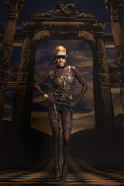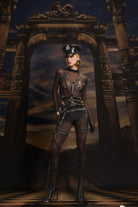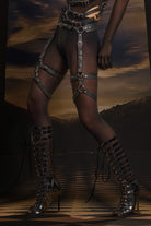 Take center stage with the Darcy Leather Strap Bottom—a bold statement piece that makes every move count. Inspired by Lady Gaga's signature breakthrough style, this bottom strap features adjustable faux leather straps that wrap around the waist, hips and thighs with precision. The open design shows off and accentuates your natural curves, while silver-tone hardware adds a hint of rebellious industrial style. Whether you pair it with a crop top, bodysuit or pasties, this piece will make your performance a memorable fashion moment.