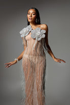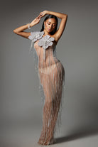 This Della Fringe Crystal Flower Maxi Dress is a perfect combination of luxury and romance, designed for women who seek outstanding style. Exquisite tassel decoration and crystal flower details, paired with breathable mesh fabric, create a dynamic and visually impactful effect. Whether on stage, at a dinner or at a party, this maxi dress can make you the focus of the audience.