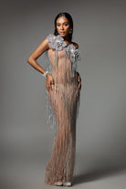 Della Fringe Crystal Flower Maxi Dress-Show brilliant splendor and romantic style