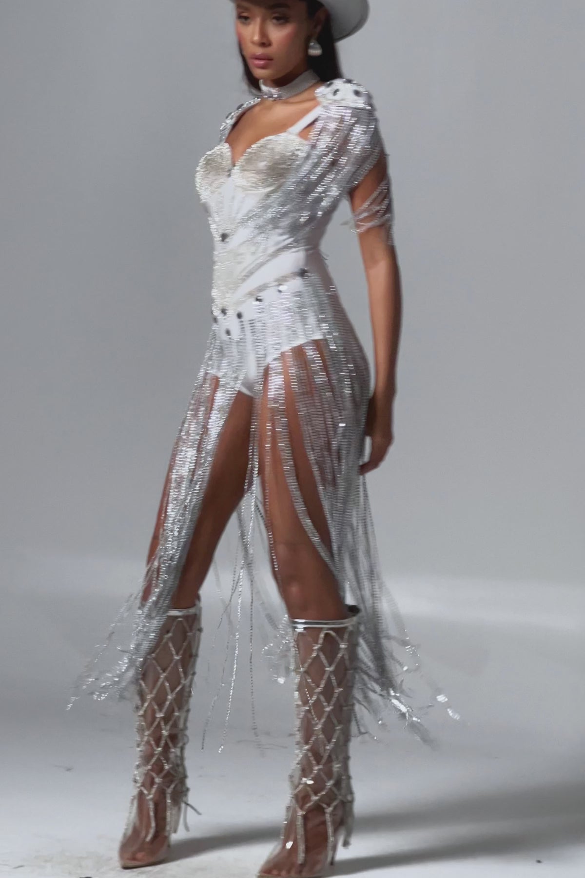 - Gorgeous tassel design: Silver tassels cover the entire outfit, dynamic and dramatic.