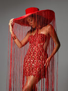 This Ellianna Fringe Hat In Red is the ideal choice for every woman who pursues uniqueness and fashion. The bright red color brings you a strong visual impact, perfectly showing vitality and confidence, making you the focus in any occasion.