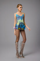 The Emmd Spaghetti Rhinestone Pleated Mini Dress perfectly blends elegance and playful charm. Featuring delicate spaghetti straps and intricate rhinestone butterfly embellishments, this mini dress shimmers brilliantly under the lights. The pleated skirt adds elegant movement and texture, further enhancing its feminine allure. Ideal for parties, performances, or special events, this dress captivates with its perfect balance of glamour and sophistication, making it an unforgettable statement piece.