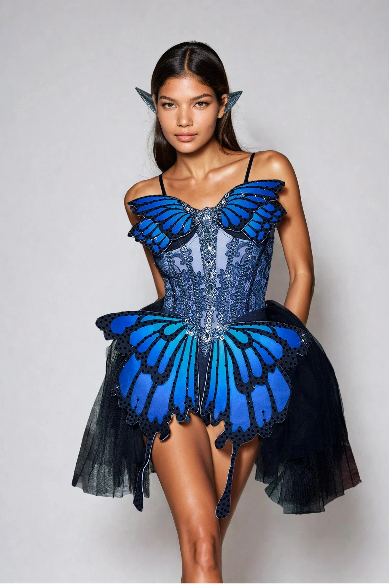 This mini dress combines glamour and sophistication, and the tulle fabric creates a dreamy effect, allowing you to easily control any occasion. Whether you are on stage, attending a special party, or just want to stand out at an event, this dress will attract everyone's attention with its unique design.
