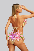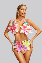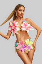 Make your moment come true with the Georgia Flower Bikini Two Piece Set. This vibrant, playful performance set exudes energy, femininity and wild style. Made for bold and beautiful women, this bikini set features colorful 3D floral appliques on the bodice and bottom for a fresh, flattering silhouette. Designed for dancers, stage queens and festival idols, the fitted bottom allows for freedom of movement while keeping the look secure and ready for show. Whether you're stunning on the catwalk, stunning at a festival or performing under the lights, this set will make you the center of attention.