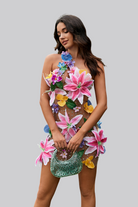 - Multi-color 3D flower appliques add vibrancy and visual texture