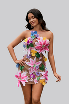 Make yourself the center of attention in this Georgia Flower Rhinestone Mesh Dress, a glamorous blend of sexiness and sparkle. Crafted from a sheer mesh fabric, this bodycon dress is embellished with scattered rhinestones and eye-catching 3D floral appliques in vibrant colors that seem to bloom over your curves. The sheer silhouette accentuates your figure and glitters under the lights, perfect for dancers, drag idols, and festival performers. Whether you're strutting on stage or making a grand entrance, this dress will make every move look stunning.