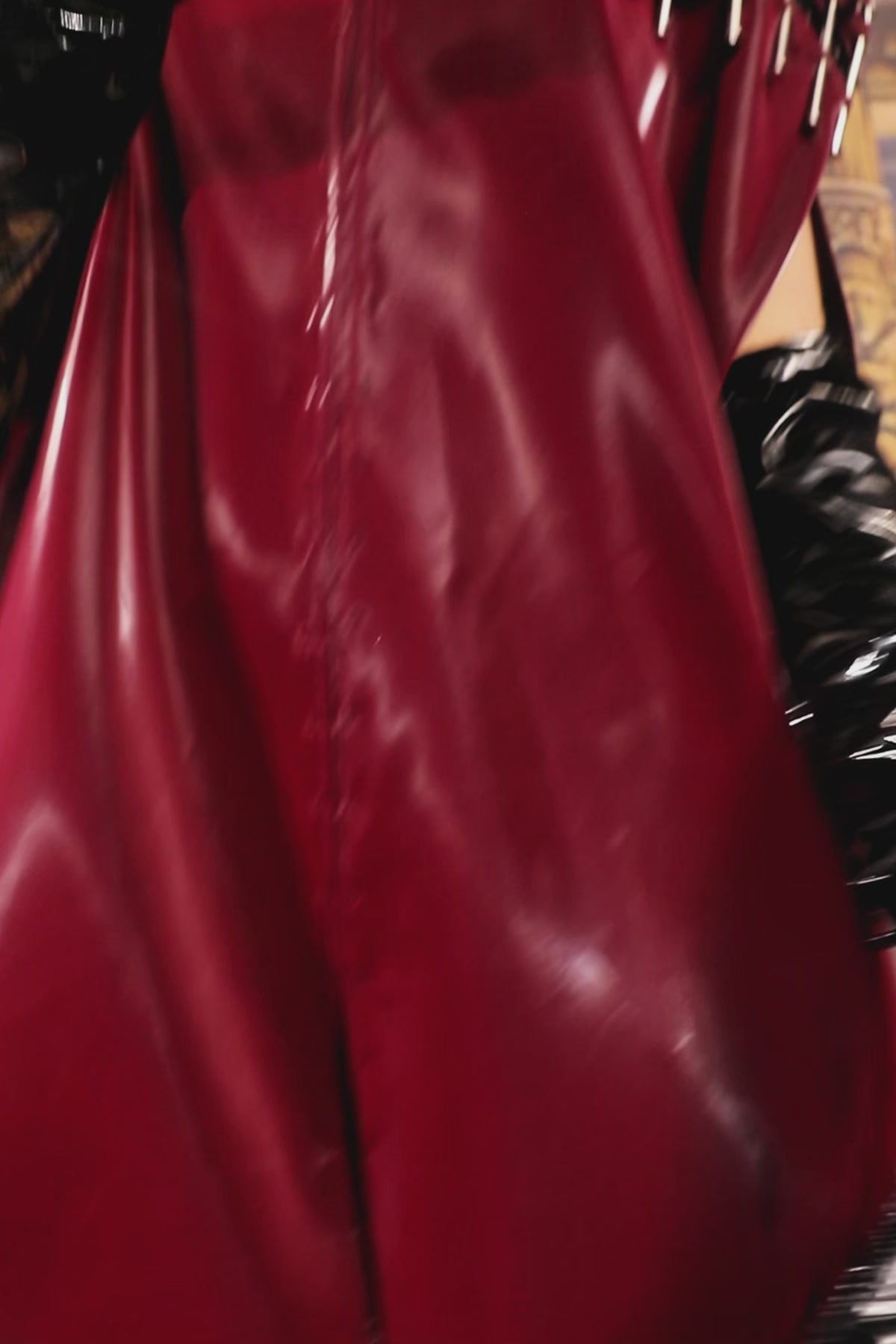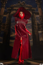 Channel your inner iconic glamour with the Henley Split Coat Red With Hat, inspired by Ladygaga bold fashion style. Designed to seduce, this edgy coat features front and side slits for a bold, dynamic look that's eye-catching from every angle. Crafted from a vibrant red fabric, the silhouette is fluid and structured, blending drama with high fashion. Its sharp cut makes it perfect for stage performances, music videos, fashion shoots, or just about anything.