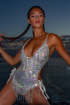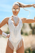 Holland Sequin Pearl Bodysuit Silver is a masterpiece of modern artistic elegance combined with love and passion for partying. Designed for stage performances, festivals and parties, this jumpsuit is made with hand-sewn sequins and pearls on the fabric, which is as sparkling as it can be. The pearl-studded tassels will sway beautifully while dancing at raves, festivals and cool parties. With an open back tied at the back of the neck, back and both sides of the hips, this jumpsuit dances with your every breath.