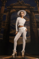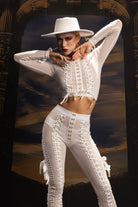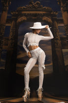 The Isael Mesh Pants Set White is a stylish and breathable set that will elevate your stage presence as you dance. Composed of a see-through long-sleeved mesh crop top and high-waisted pants, it perfectly blends sexy glamour with modern sporty style. The see-through fabric adds a bold and edgy fashion feel while ensuring comfort and flexibility with every step. Whether you're commanding the stage, leading the catwalk, or lighting up a music festival, this set showcases clean lines, striking minimalism, and confidence.