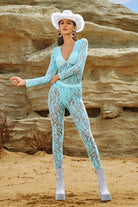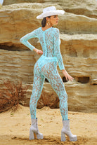 Take on the stage with the Jameson Lace V Neck Pants Set. This stunning two-piece set is designed for ultimate visual impact. The set features a deep V-neck sheer lace bodysuit paired with flattering high-waisted pants to elongate your figure. The delicate lace and shaping cut precisely accentuate your figure, while the rich green color adds a touch of luxury for a stunning look. Perfect for performers, dancers and nightlife fashionistas who are ready to express their style.