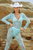 Jameson Lace V Neck Pants Set-Emerald Allure