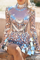 - Design: high-neck long sleeves, close-fitting fit, irregular geometric sequin decoration