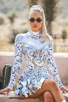 Josie High Neck Sequin Dress White - Sparkly Long Sleeve Party Outfit for Festivals Clubbing